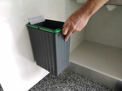 Affaldsspanden leveres med ophængsbeslag til smal montering og er velegnet til montering på indersiden af køkkenlågen eller direkte i køkkenskabet, men findes også til bred montering