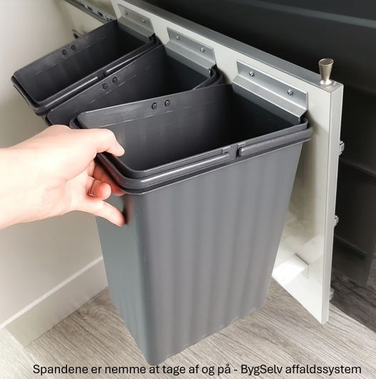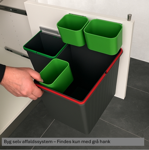 Byg-Selv affaldssystem. Med flere affaldsspande kan du sammensætte et system, der passer præcist til dine mål og dit behov for sortering.