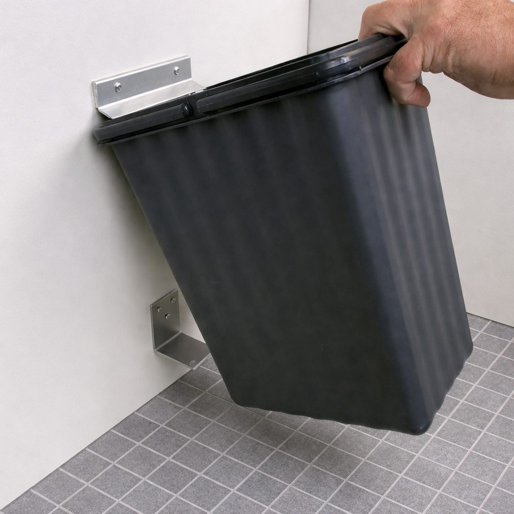 Med vores ophængsbeslag er det nemt at tage affaldsspande af og hænge den på igen. Det er en stor fordel at have skraldespanden løftet op i en passende højde, når man står og arbejder ved et bord.