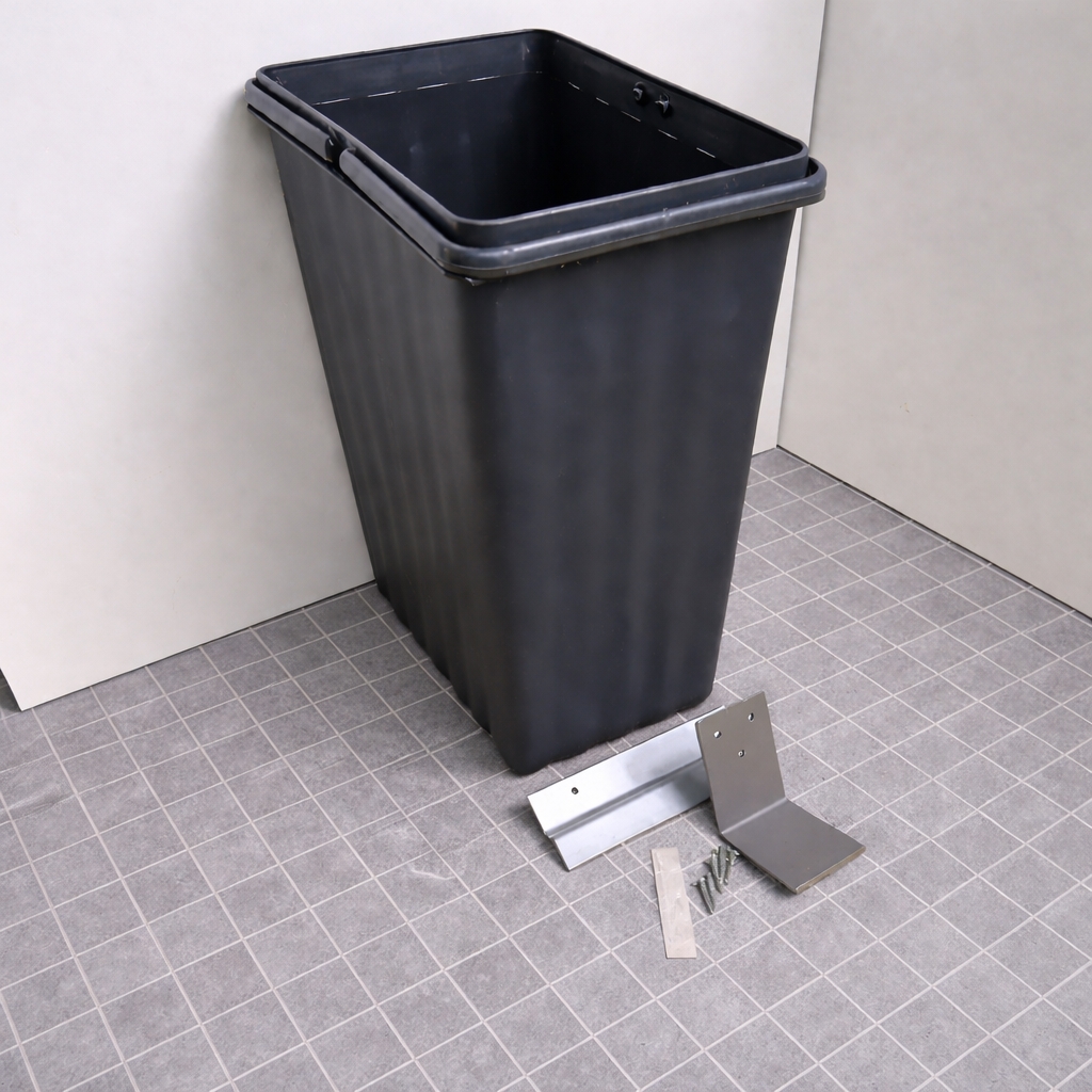 4. Nu er de to nederste vinkelbeslag monteret. Sæt spanden ovenpå så det er nemt at sætte det øverste beslag ovenpå igen, for at finde beslagets rette højde.