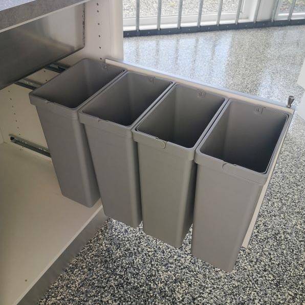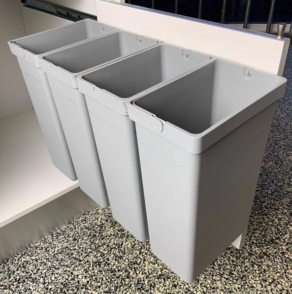 Dette er en super smart løsning til dig, der ikke har særlig meget plads i dit køkkenskab. Med fire affaldsspande er der rig mulighed for at affaldssortere.