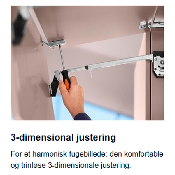 • Finjustér lågen 2 mm i alle retninger på beslaget. Perfekt indstillet set udefra.