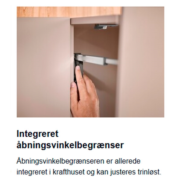 • Åbningsvinklen kan begrænses med et klik. (trinløs)