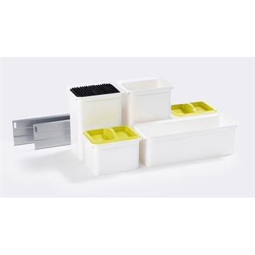 Sættet er med hvide plastikbeholdere.