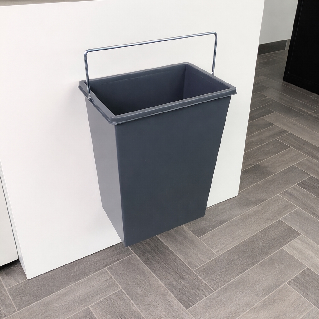 Den fleksible ophængsløsning gør spanden ideel som skraldespand til køkkenskab, når du ønsker en funktionel og let tilgængelig løsning i hverdagen.