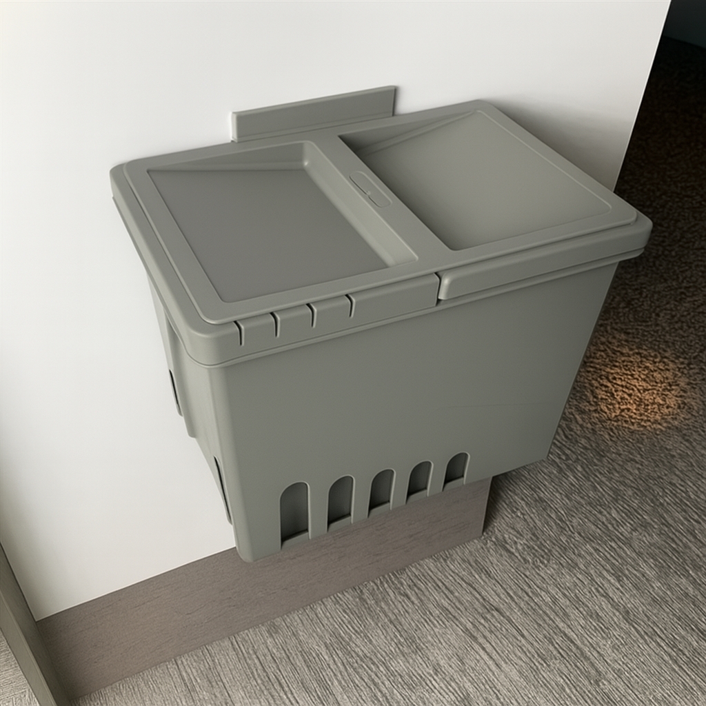 Det giver flere fordel at hænge sine affaldsspande op. Du får mulighed for flere spande, spanden kommer op i højden, fri gulvplads og dermed lettere rengøring.