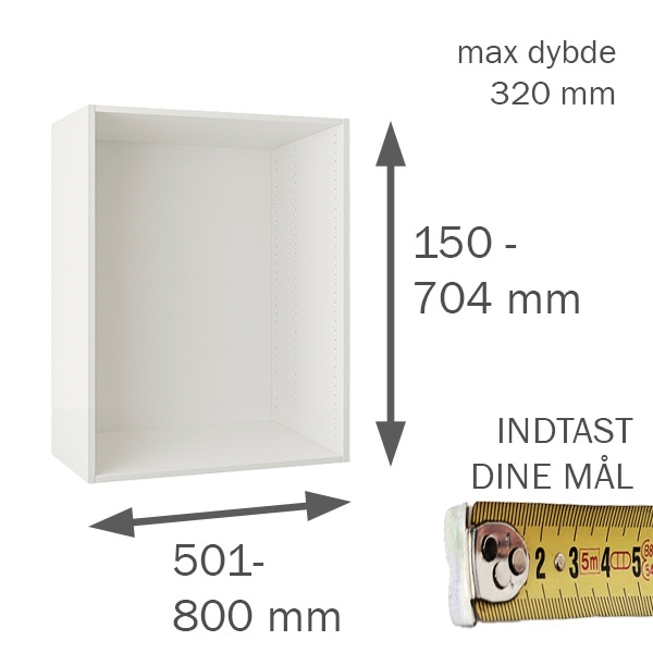 OVERSKAB efter mål H:150-704 B:501-800 D:150-320 mm