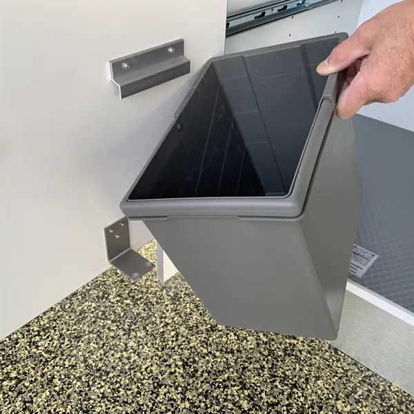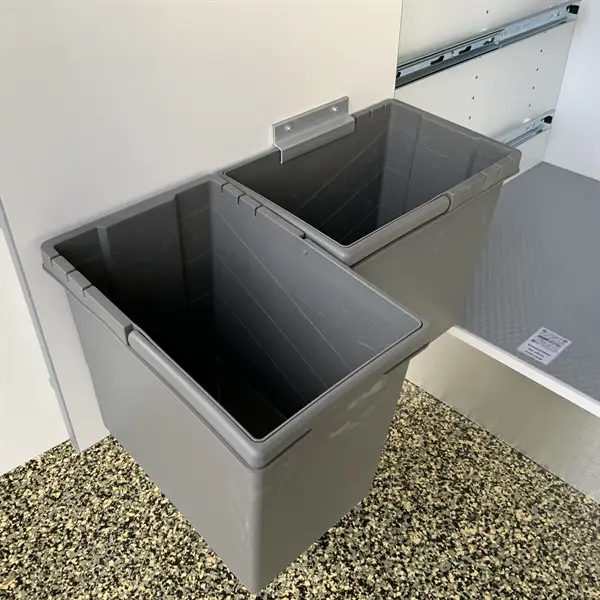 Fordelen ved at hænge sin affaldsspand op, kan være det at den kommer op i højden, hævet fra bunden af skabet hvilket gør det nemmere mht rengøring.