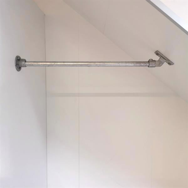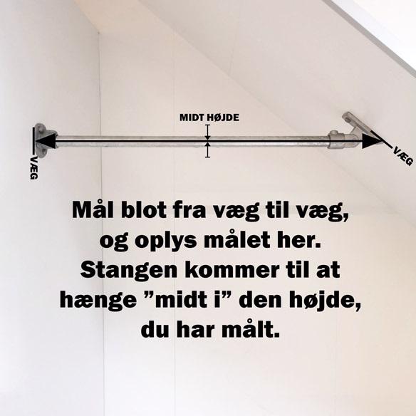 Vi skræddersyer stangen til at passe mellem en væg og en skråvæg hjemme hos dig.