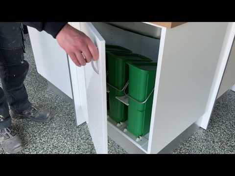 - Spanden vipper selv ud, når du åbner lågen. Da spandens top er skrå, vipper åbningen helt ud til dig.