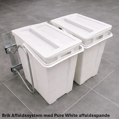 Er Populær til affaldssortering i 60 cm skabe hvor der ofte monteres to affaldsspande side om side, afhængigt af plads til vask og rørføring. Det giver en enkel og overskuelig løsning til affaldssortering i køkkenskabet.