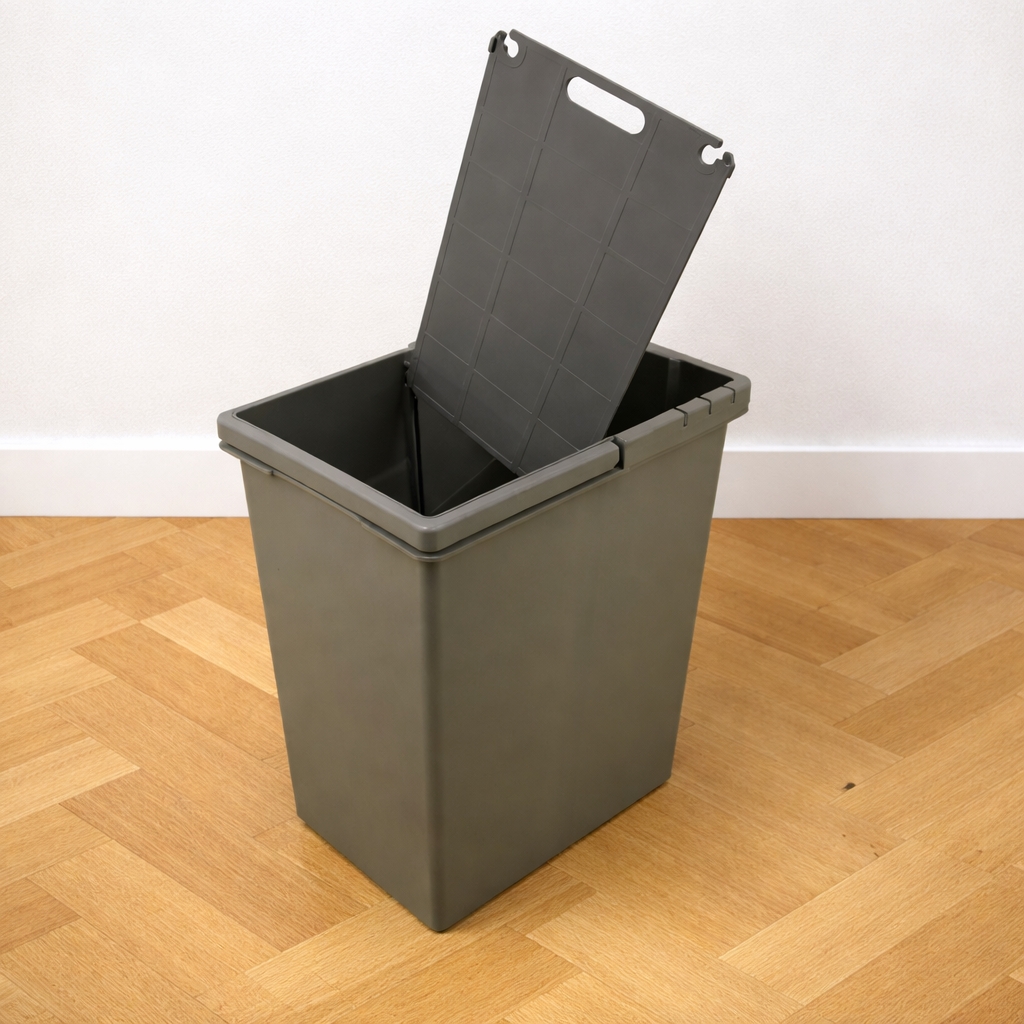 Skraldespanden kan anvendes som affaldssortering i bryggers, bad eller værksted, hvor der er behov for en fleksibel og pladsbesparende affaldsløsning.