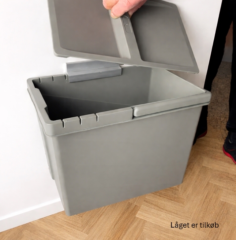 Skraldespanden findes også til smal montering, så det giver god mulighed for at den kan blive en stor del af affaldssorteringen i hjemmet. Der kan også tilkøbes låg i både grå eller hvid.