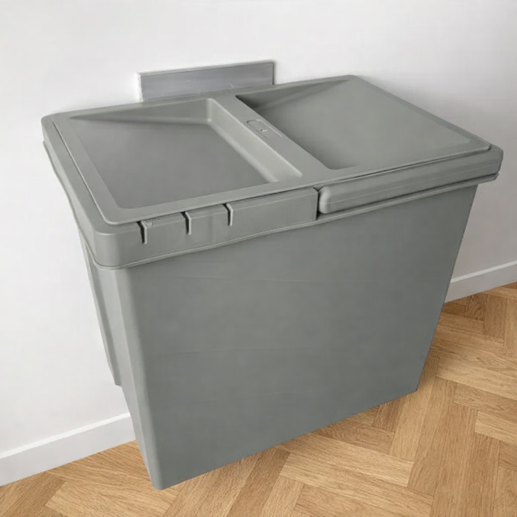 Er Populær til affaldssortering i 60 cm skabe hvor der ofte monteres to eller flere affaldsspande, afhængigt af plads til vask og rørføring. Det giver en enkel og overskuelig løsning til affaldssortering i køkkenskabet.